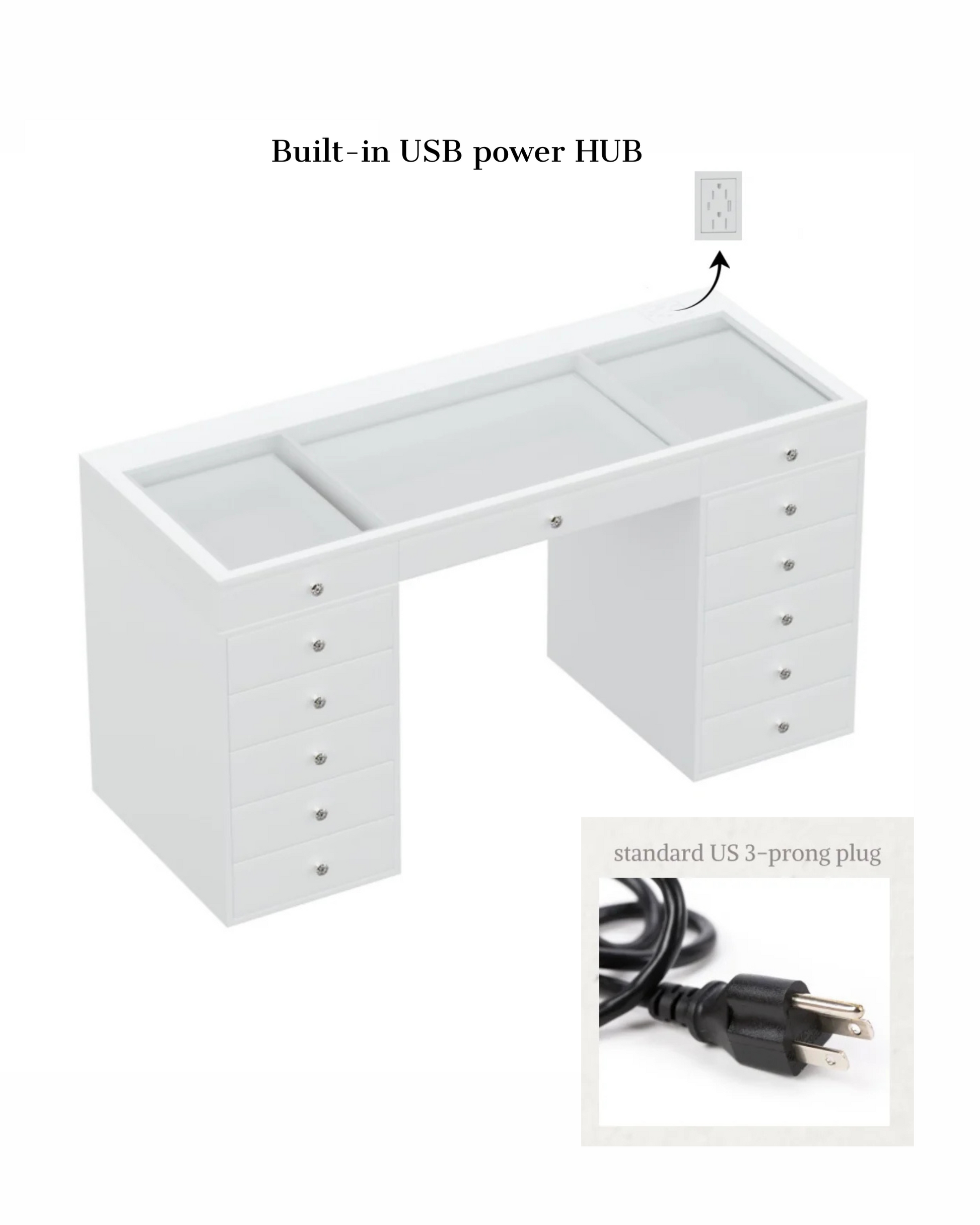 Designed for today's beauty lovers, it features built-in USB ports and power outlets, letting you easily power your devices while you get ready. Diamond Glow is more than just a vanity — it’s the glow-up your space deserves.