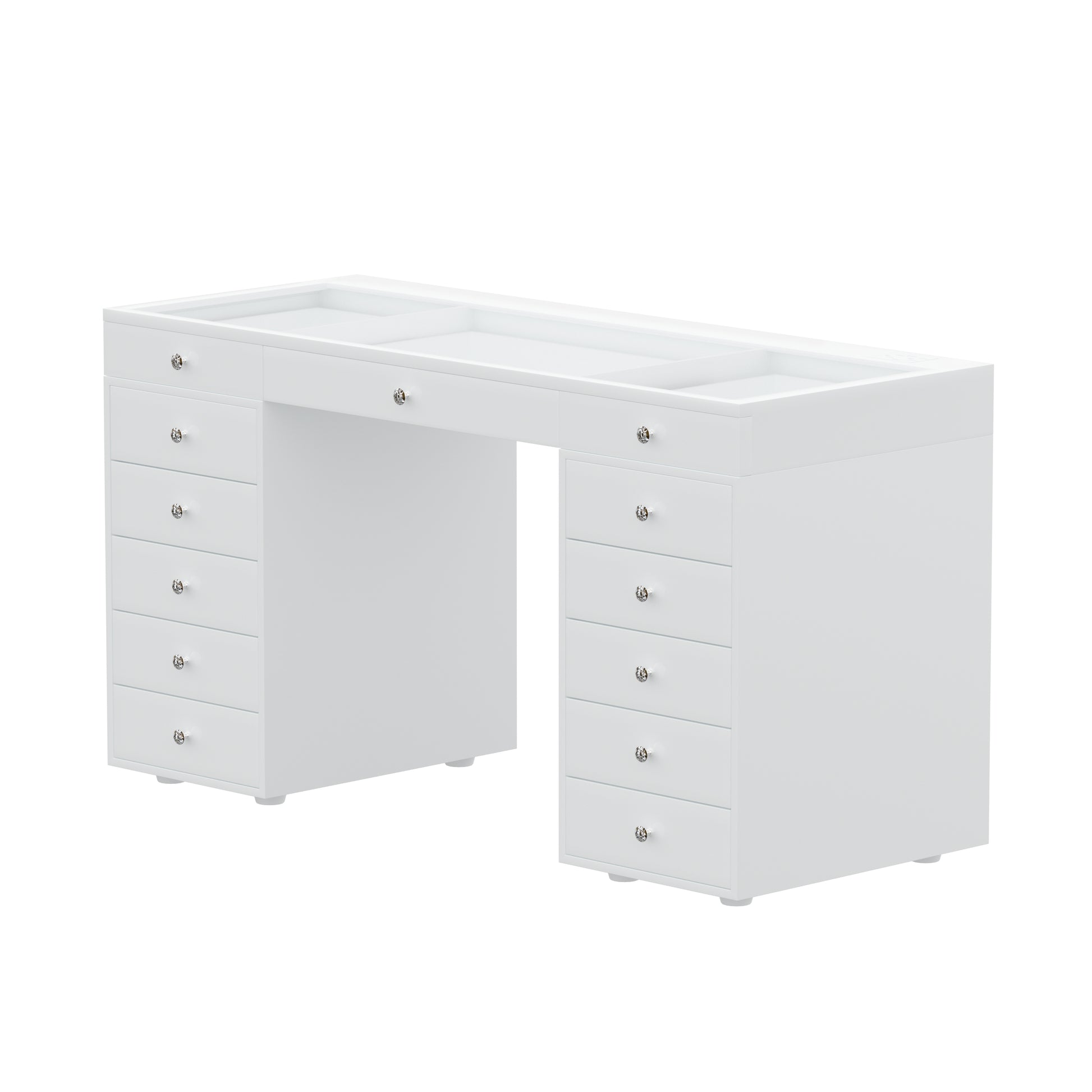 Step into luxury with the Diamond Glow Vanity — a stunning combination of timeless elegance and modern convenience. Its high-gloss white finish and sparkling crystal-style knobs create an eye-catching centerpiece, while the tempered glass top adds a touch of refined beauty.
