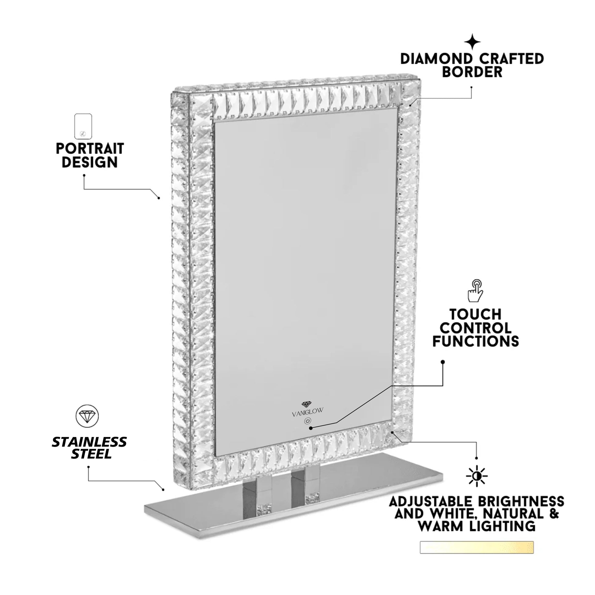Let your space shine with the soft, magical glow of the Fairy Glow Mirror — a portrait-style vanity framed in 198 luminous crystal accents. With its vertical design and diamond-crafted border, this mirror brings a clean, sparkling elegance to any beauty setup.