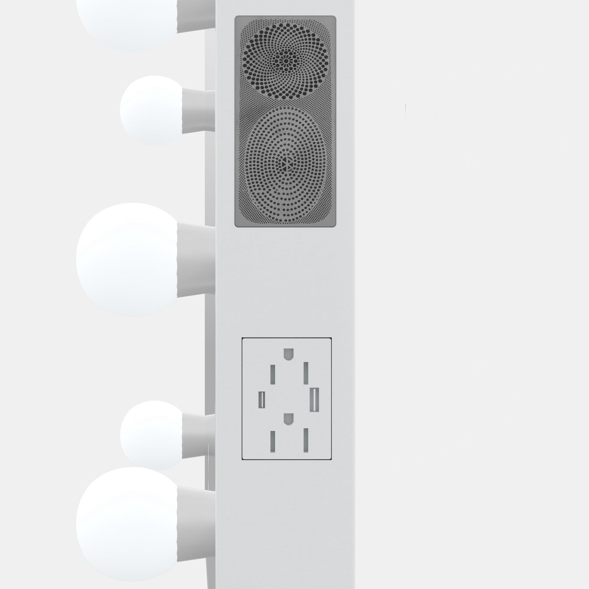 Meet the Pearl Glow Mirror—a chic white LED vanity boasting Bluetooth connectivity and a sleek power hub. With three light tones, touch-sensor controls, and built-in charging for devices, it's the perfect blend of style and tech for your glow-up desk.